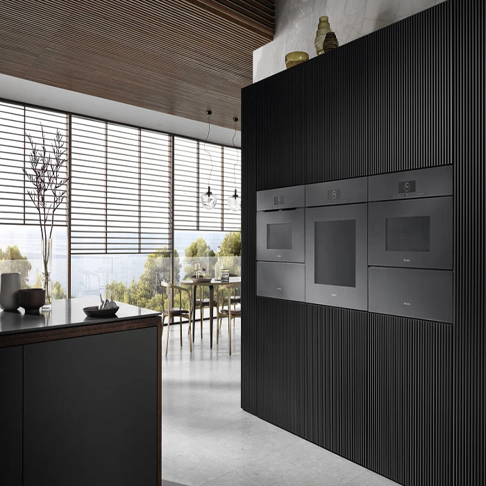 Minimalismo puro: diseño sin tiradores. Modelos ArtLine completamente de cristal en colores Graphite Grey u Obsidian Black: perfecta integración en la cocina.
